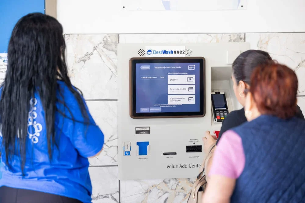 The VAC is a sleek, wall-mounted kiosk where users can reload cards, purchase new ones, or add balance to their mobile app—all with cash, card, or EBT. It keeps your staff in the background, not messing with change machines.